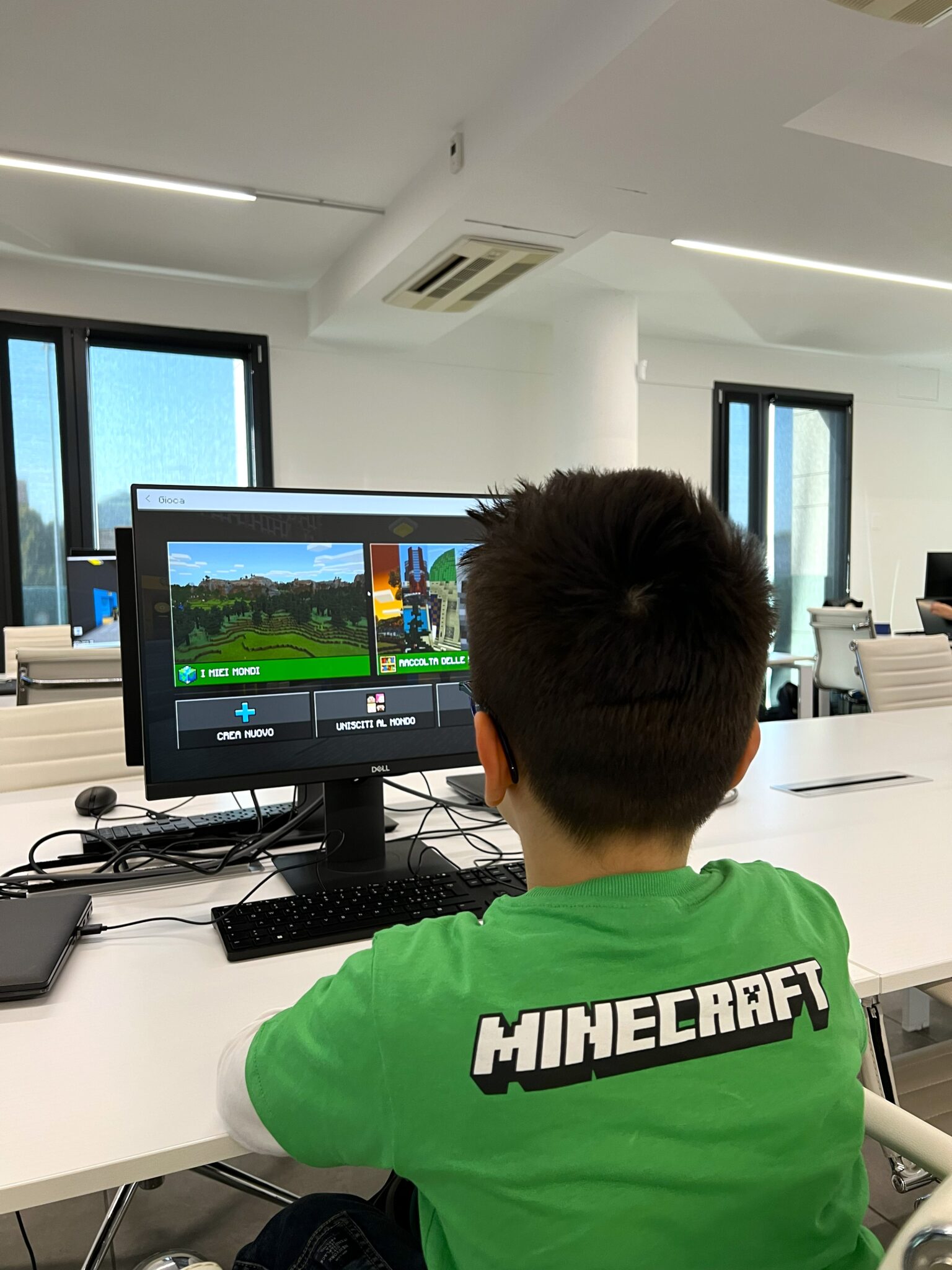 – mentre nei laboratori basati su Minecraft arricchisce la capacità di costruire e dare forma a mondi e ambienti digitali.